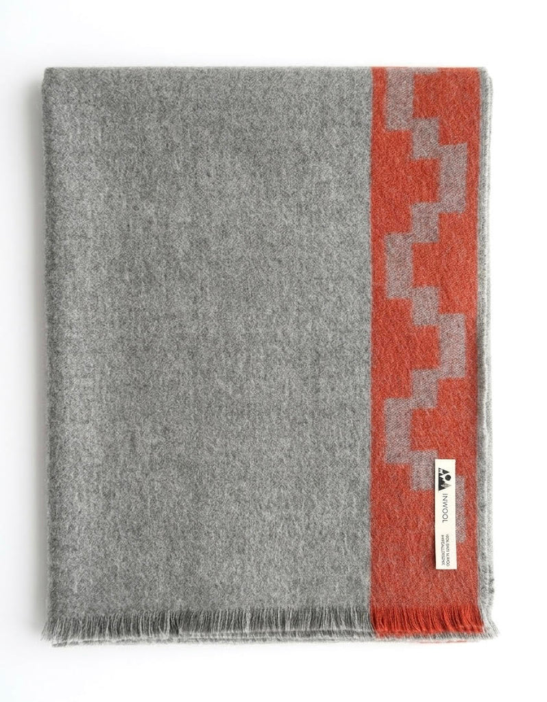 Baby-Alpaka Wolldecke mit Ornament in hellgrau/rot